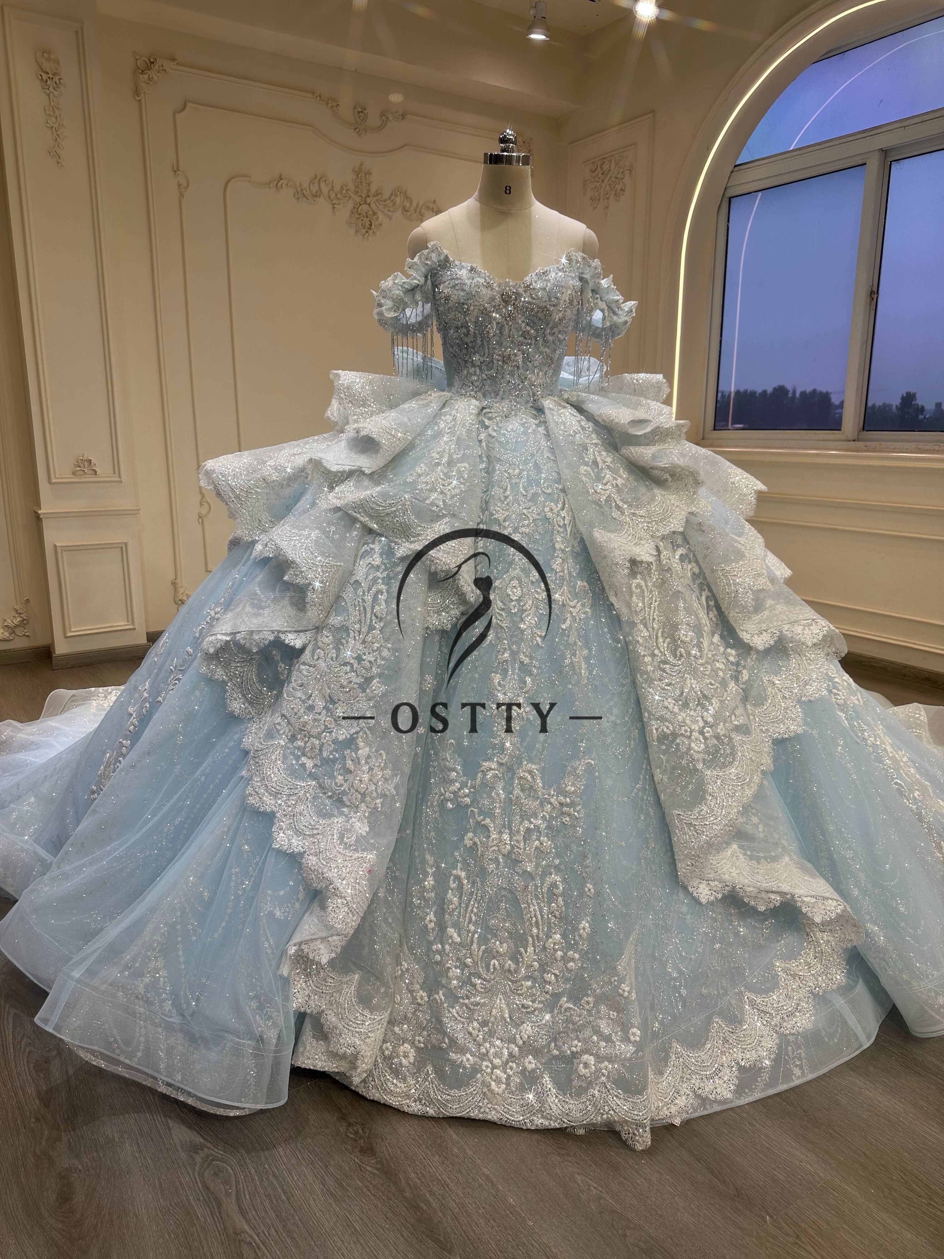 Material: Glitter tulle, lace, sequins, embroidery, lining